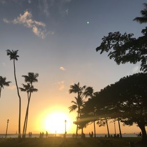 アラモアナビーチでサンセットを見た後、ヒルトンホテルの花火、タンタラスの丘に行きました。