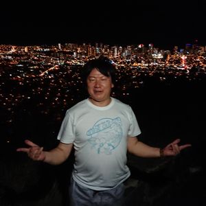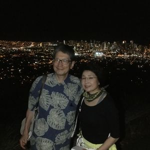 私は函館市出身で、綺麗な夜景は見慣れていますが、高層ビルが立ち並ぶホノルルも良いですね。クリスさんに写真を撮っていただきました。