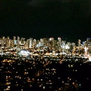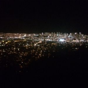毎回オアフ島に行った際には夜景ツアーに参加し有料で写真を撮ってます。今回のツアーはマラサダと温かいお茶が付いてて、ガイドさんも車中は楽しく丘でもいろいろ気配りをして下さりとても良かったです。