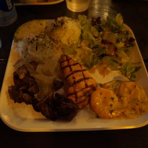 ベアフットカフェのB級グルメは、このツアー用に作られたメニューということで、ガーリックシュリンプもステーキもサーモンも1つのプレートになっていて、お得感満載でした☺️