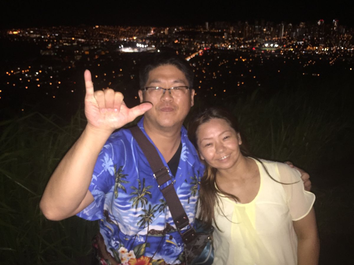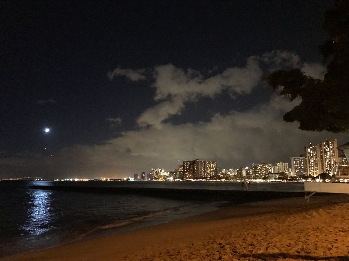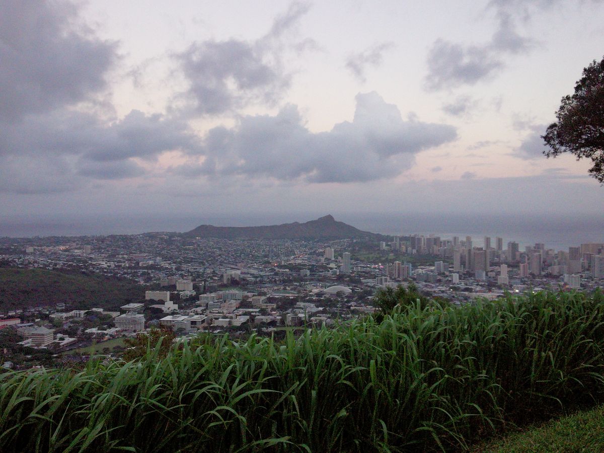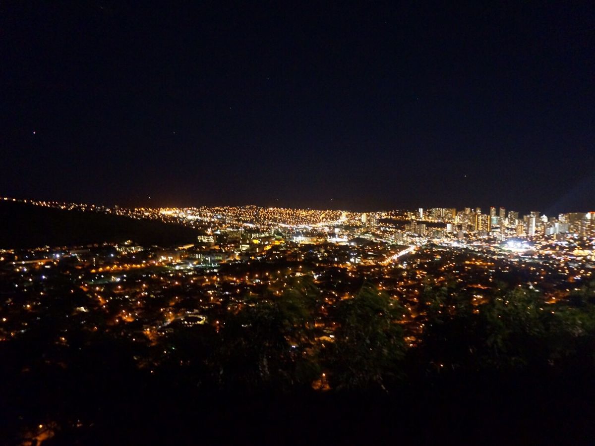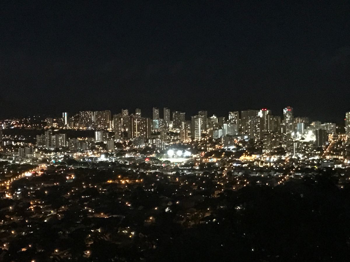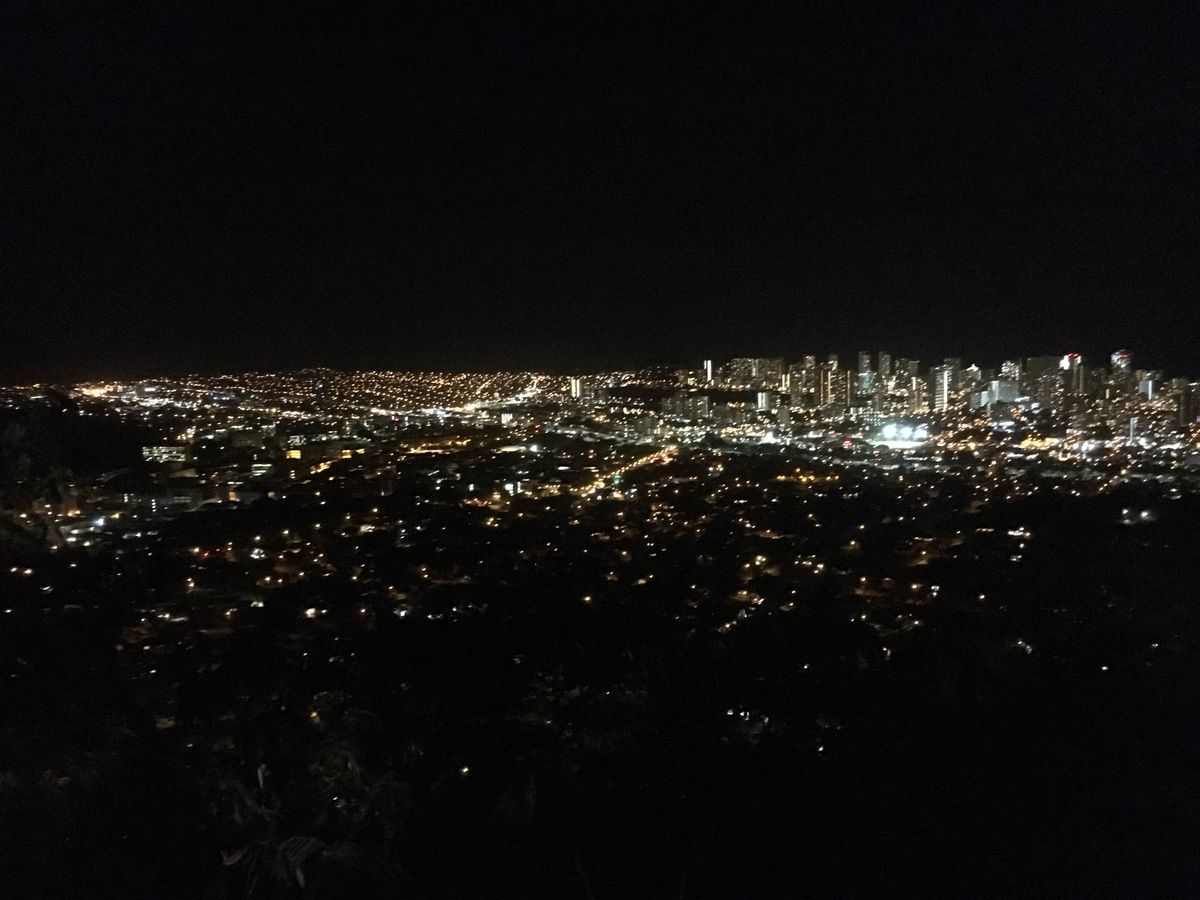 当日は、すこし雨模様の日でしたが、丘に登った時には雨も上がり、眼下に素晴らしいホノルルの夜景を見ることができました。