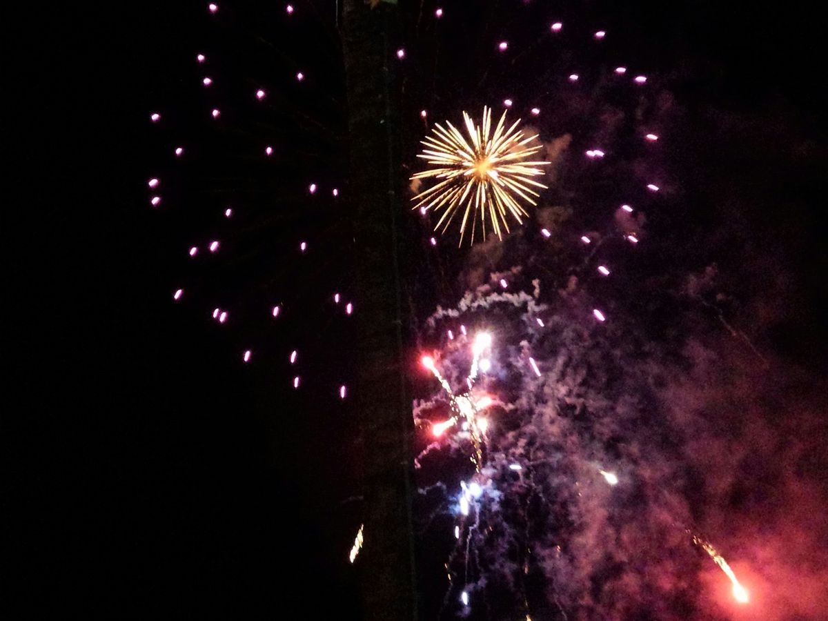 ビーチからヒルトンの花火をみることができました。