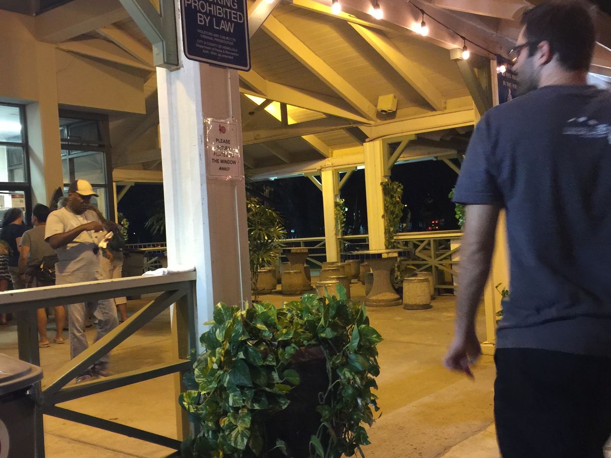 まず、日本語ぺらぺらの面白いベテランガイド、ということで申し込んで、かなり期待していたのですが、実際きたのは今日が初めてという新人さん。声は小さく、初めて運転する小さな車の後に押し込められ、説明はほとんど聞こえず、あまりに退屈で親子3人寝てしまいました。ホテルのお迎えからして20分遅刻。理由は渋滞、ですが、金曜の渋滞は初めて行く私でも知っていたので、他の組が遅かったのかなと思います。運転手兼ガイドのお兄さんよりも、もう一組の親子のお母さんに謝られてなんだか私が悪物みたい。おまけに足の悪いおばあちゃんが真ん中の一番乗り降りする席に座っていたので雨の中、タンタラスの丘で降りたくても降りたいとは言えませんでした。お母さんが気を使って降りようと言ってくれましたが、雨が降ったりやんだりでなんども乗り降りするのをおばあちゃんが嫌がり、これまた私たちが悪者みたい。そっちは先にいい写真がとれたからもういいかもしれないけど、こっちはずぶぬれの写真しか取れなかったから、やんだのならもう一度ちゃんと取り直したいのに。おばあちゃんがかなり強く、「もう降りなくていいです。さっき降りたから。」と言っていて、寄りかかっているので降りられない。結局お母さんが言ってくれて降りてもらえましたが、こちらも足の悪いお年寄りに雨の中にでろと言いたくないです。こういうことはガイドさんが、「真ん中は一番元気な人が乗ってください。」とか言わないとだめですよね。運転席の横なら降りなくても済むんだから。客に気を遣わせるなんてありえません。終始こんなかんじで、マラサダもお兄さんがどっちグループの箱なのか、どれがどれなのか全く確認しなかったようで、あーだこーだと言っていて、最後には向こうのお母さんに「そっちですきなの選んでいいですよ。もう好きにして。」とやけくそで言われて、まるでこっちがわがまま言ってるみたい。言葉もガイドさんの日本語はあまりうまくなかったので、ほとんど会話は英語で私が子ども達に訳しました。まあ、うちはあまり会話に参加できなかったし、あちらの娘さんはほとんどしゃべらず、おばあちゃんはどうでもいい様子。ほとんどお母さんとガイドさんのプライベートな超どうでもいい会話でした。ただの乗り合いタクシーなら仕方ないですが、面白い外人のガイドさんのはずなのに何で?大金払ってどうしてこんな目に?という感じでした。日本人舐めてんのかと思いました。10問くらいクイズがでましたが、私たちに聞こえたのは3問くらい。チップは払いませんでした。前日に確認したところ、アメリカでは共通して面白かったら15%で面白くなかったら払わないと言われましたので。ガイドさん、とっても優しい良いお兄さんでしたが、お仕事としてはダメダメですので。払わずに、お礼だけ言って握手して別れました。もう一組のお母さんは払ったと思いますよ。うちよりは我がもの顔で会話楽しんでいたし、優遇もされていたので。ハワイについた翌日で昼間のツアーもいまいちだったので、この日はハワイのオプショナルツアーはバカ高いだけでみんなこんな?と思って落ち込みました。あ、花火は観賞と言うほどのものではありません。5分ほどの対岸に小さく見える花火を見ただけです。それを見たからスーパーは寄らないとのこと。意味がわからない。B級グルメは美味しかったけど、値段は1200円くらいと予想します。マラサダは700円くらいだったので、実費は2000円くらい。あと車代として、私はばか高いと思いました。体験談で高評価だったのでものすごく裏切られた気分です。子どもたちにわかるくらい「日本語ぺらぺらのベテランガイド」でないなら、お金返してほしいです。ガイドさんの日本語よりも私の英語力の方が上ですが、私は英語ペラペラなんかじゃないです。なんとか通じる程度。「日本語ぺらぺら」「ベテラン」どれにも当てはまらないのは詐欺でしょ?そこを売りにしてるんだから。