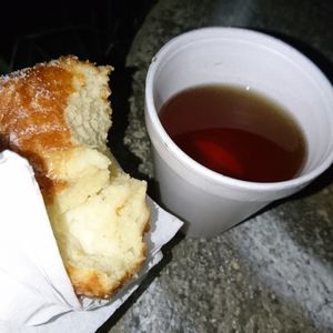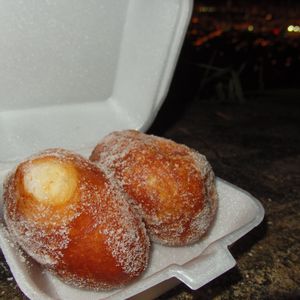そしてマラサダ、真っ暗闇の中、「チョコレート!」など希望した味が呼ばれ、受け取ります。夜景を見ながらどんなシルエットなのかよくわからないパンをほおばりました。紙コップでジュースの差し入れもありました。