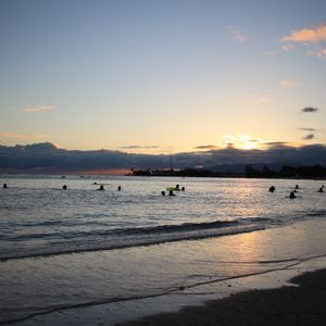 事前に日本からホノルル到着日の夜に7名で予約していましたが、ホノルル到着後、同じツアー仲間で当日の予定が決まっていない2名の方から是非一緒に行きたいと申し出があり、電話にて急遽、当日の15時頃に2名追加をお願いしましたところ、急な申し出にもかかわらず、迅速に対応頂き、ありがとうございました。この人数(9名)なので、バスは仲間内だけの貸切でした。夕食は砂浜で歌の生演奏を聞きながら、1プレート・ディナー(ステーキ・シュリンプ・サラダ・ご飯)と、持ち込んだビールやジュースで、みんなで楽しくワイワイと食事が出来ました。途中、揚げたてのマサラダ(クリーム入り揚げパン)を頂いて、タンタラスの丘へ、あいにくの天気でしたがワイキキの夜景がきれいですよ。添乗員は日本語が上手な現地の方で、バス内での説明や冗談で色々と楽しませてくれました。