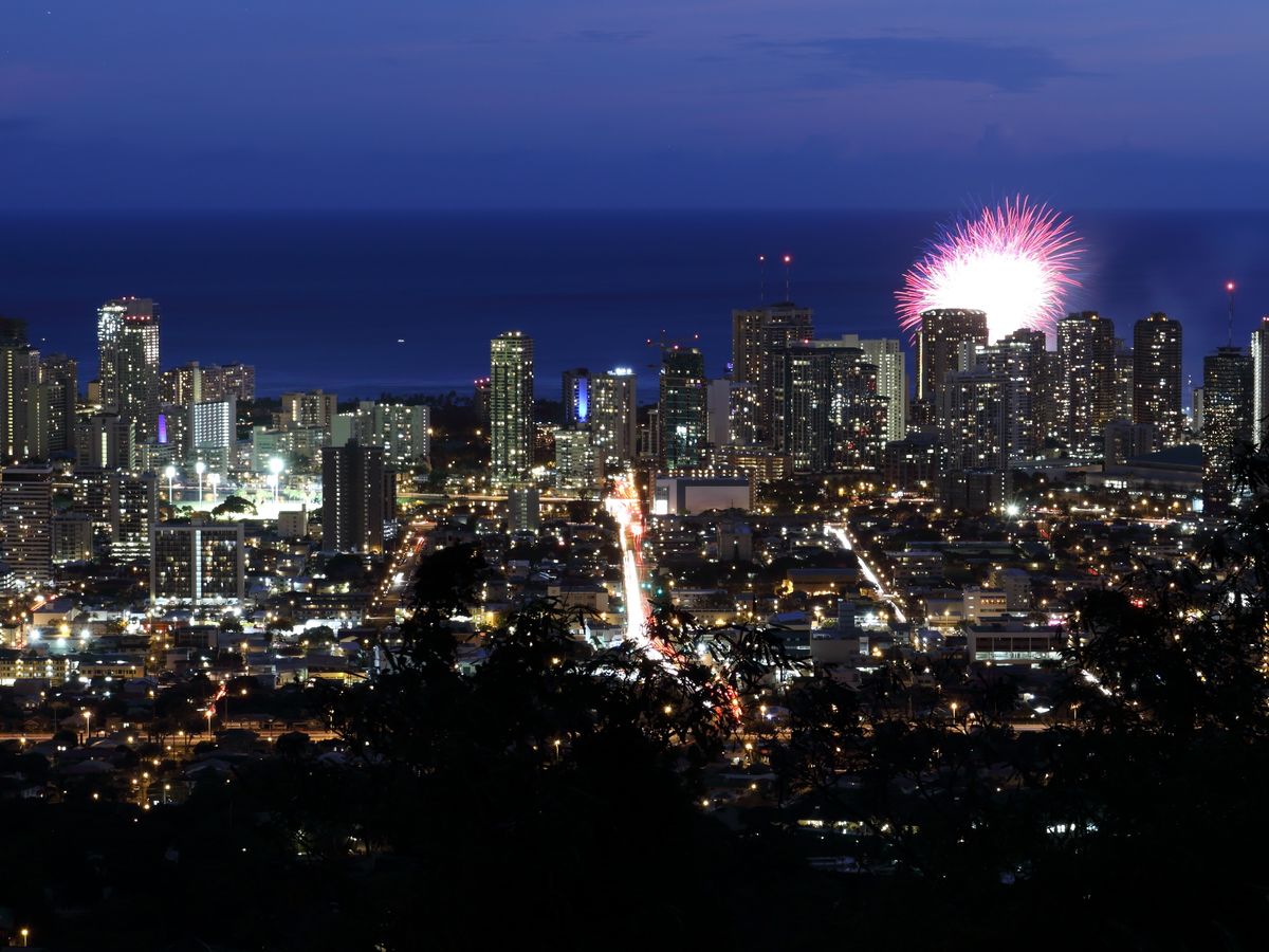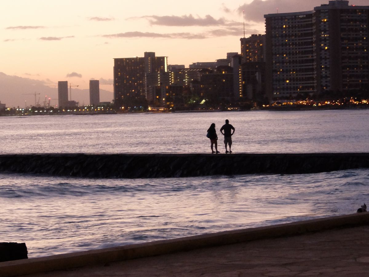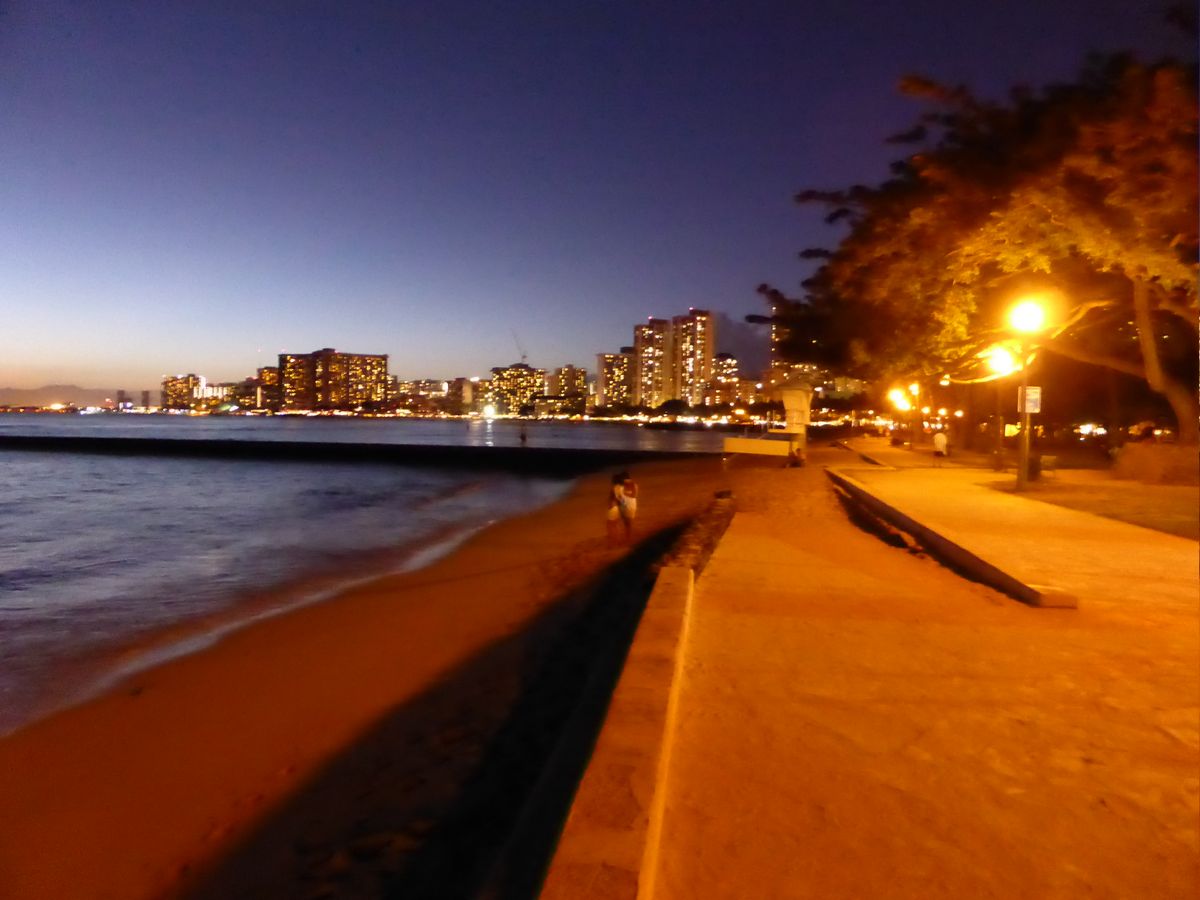 20分間という短い滞在時間でしたが、マジックアワー直前から真っ暗になりヒルトン・ハワイアン・ビレッジが打ち上げる花火まで、刻々と変わる風景をばっちり写真に収めることができ、大・大・大満足でした。