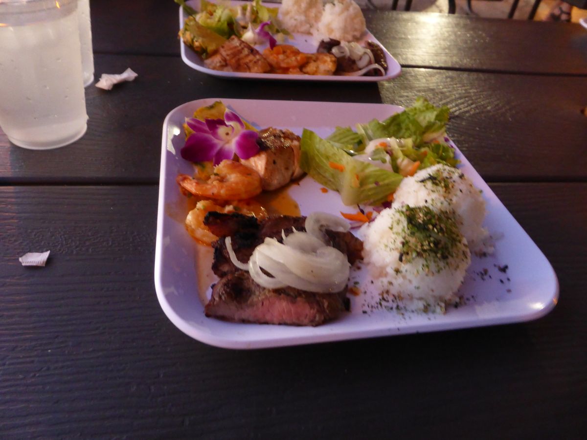ディナー会場がビーチ沿いのベアフィットビーチカフェでした。金曜日だったので、ヒルトンの花火も楽しめるという事で楽しみにしていたのですが、通された席はビーチなんてまったく見えない、レストランでもっとも奥まった場所。座席の予約ミスだったようですが、雰囲気なんてまったくなく、花火も、席をたって見える場所までわざわざいかないと見えないし、おまけに食事もお肉は硬く、ライスもさめてるし、お世辞にもおいしいとはいえませんでした。悲惨でした。