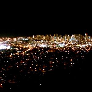車でかなり登り、着いたらそこにはハワイの夜景が広がっていました!