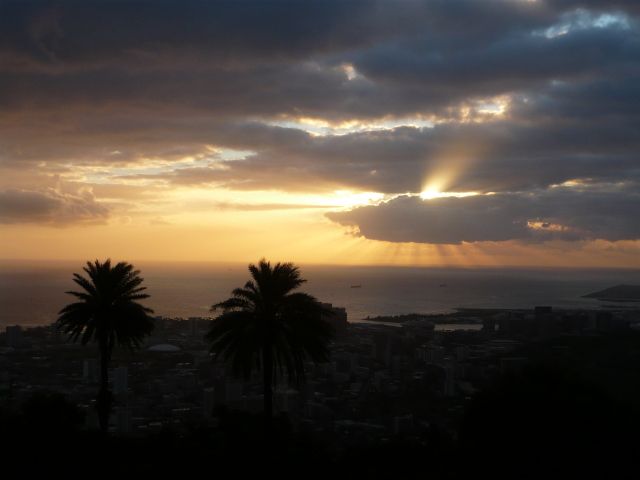 ・タンタラスの丘の展望スポットにて、海に沈む夕日の鑑賞。