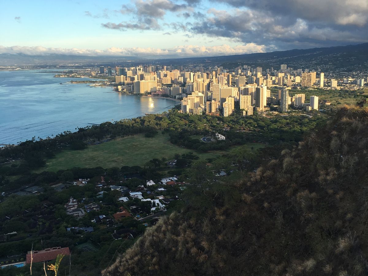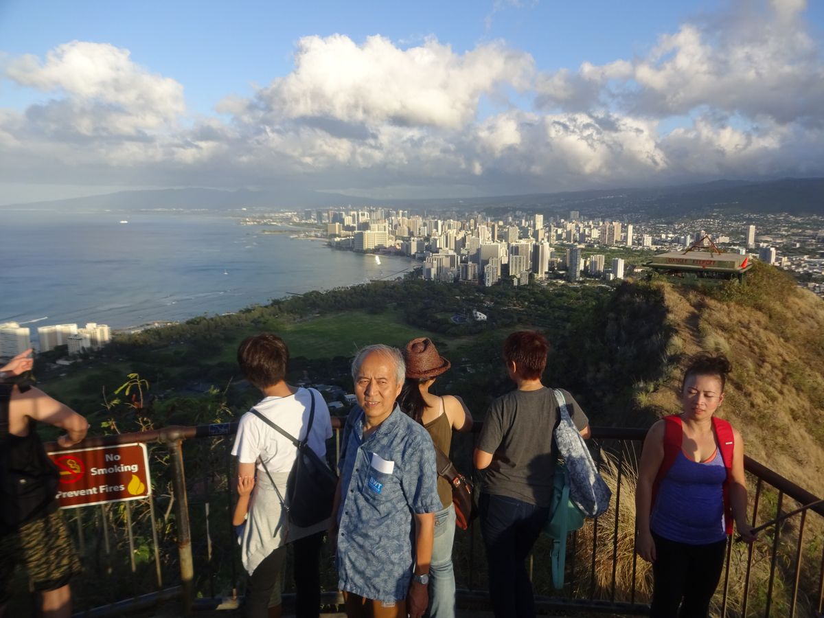 早朝に出発し、ダイヤモンドヘッドに登ります。時間は十分に確保されていますので、自分たちのペースでのぼることが出来ます。綺麗な朝日とホノルル市内の景色を一望することが出来ました。