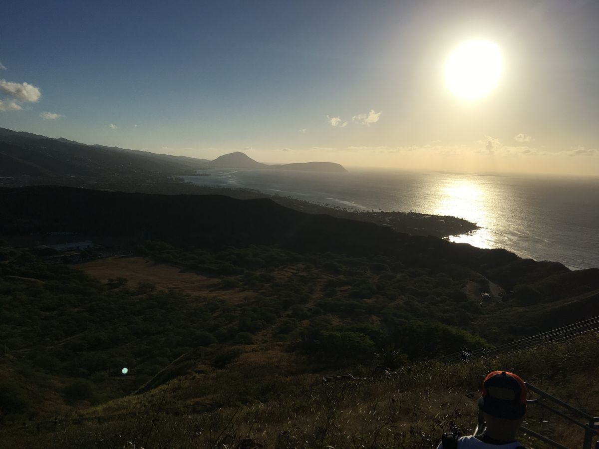 ダイヤモンドヘッドは、最後の階段、そしてさらに螺旋階段と続き、急に辛くなりますが、その分達成感があります。山頂で朝日が見れれば良かったですが、登る前から日が昇ってました。