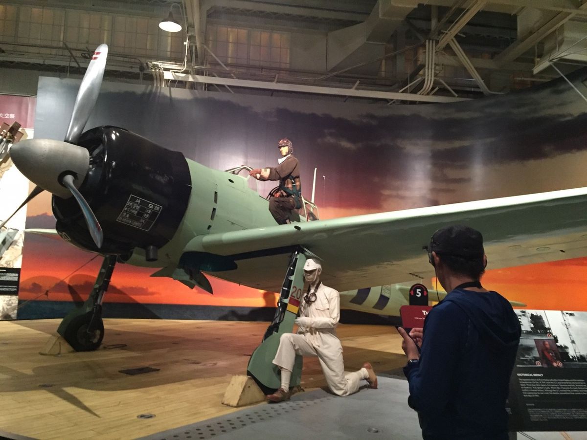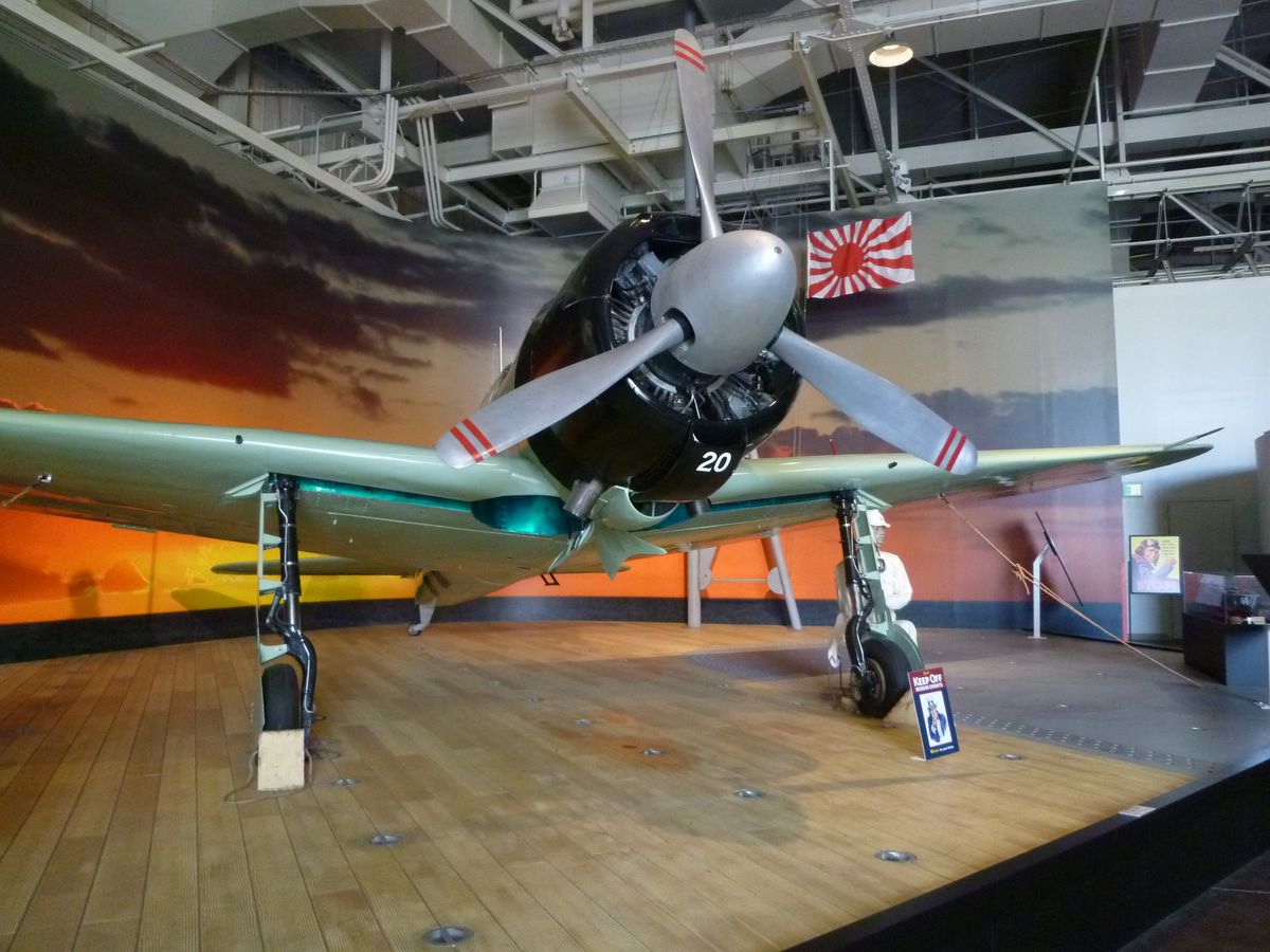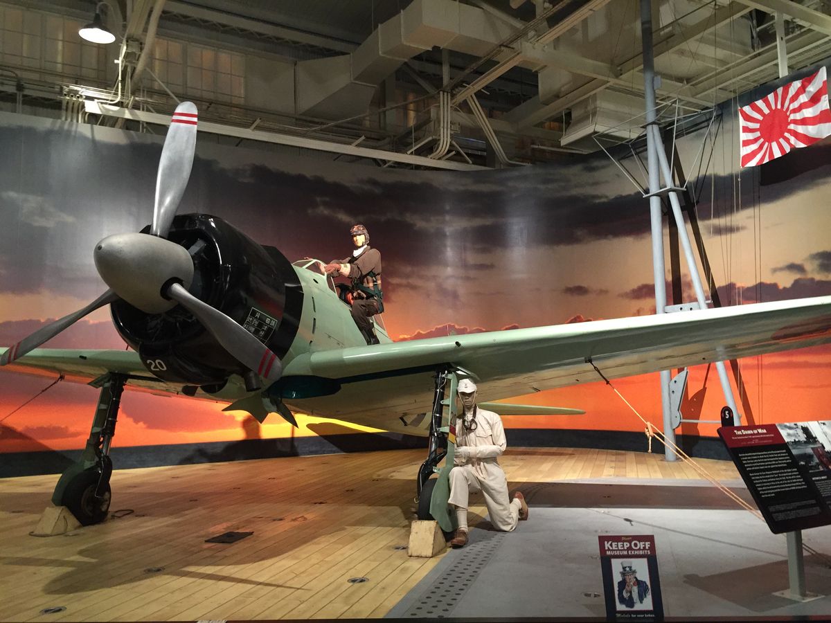 太平洋航空博物館では、正面に実物大のゼロ戦が展示され、「ゼロ戦かく戦えり」の説明があり