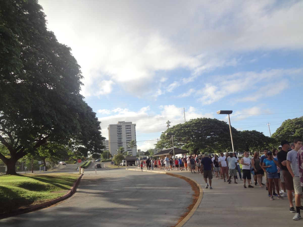 ハワイに住んでる方によると、アメリカ本土からくるアメリカ人観光客はほとんど訪れるそうです。ホテル5:55にピックアップでしたが、到着したら結構な列でした。