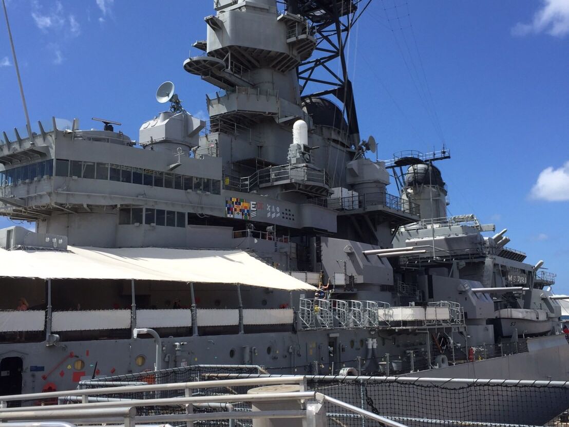 戦艦ミズーリでは、調印式が行われた場所や特攻機が直撃した跡など、戦争の歴史を学ぶことができました。