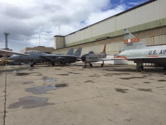 太平洋航空博物館の隣には、当時使用されていた格納庫があり、中に朝鮮戦争で使用された航空機や映画『トップガン』の撮影に使われたF14なども見ることできました。