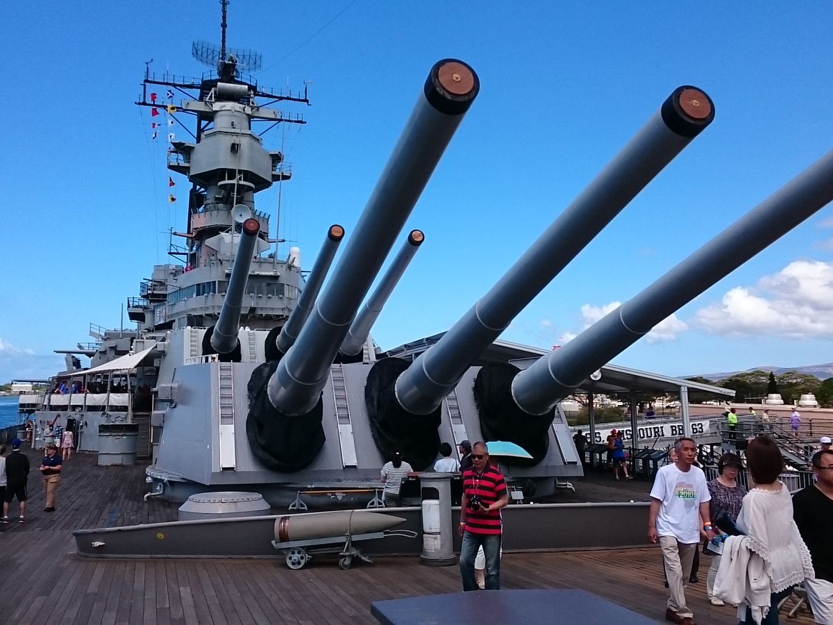 戦艦ミズーリではゆっくりと丁寧な説明で、とくに神風特攻隊の衝突跡が印象に残ってます。
