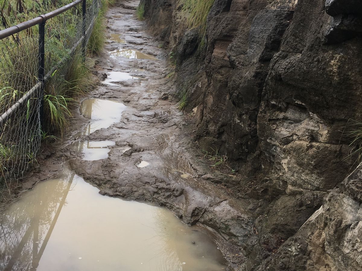 途中から舗装からのでこぼこ道に変化して、雨天の為滑りやすくスニーカー必須です。