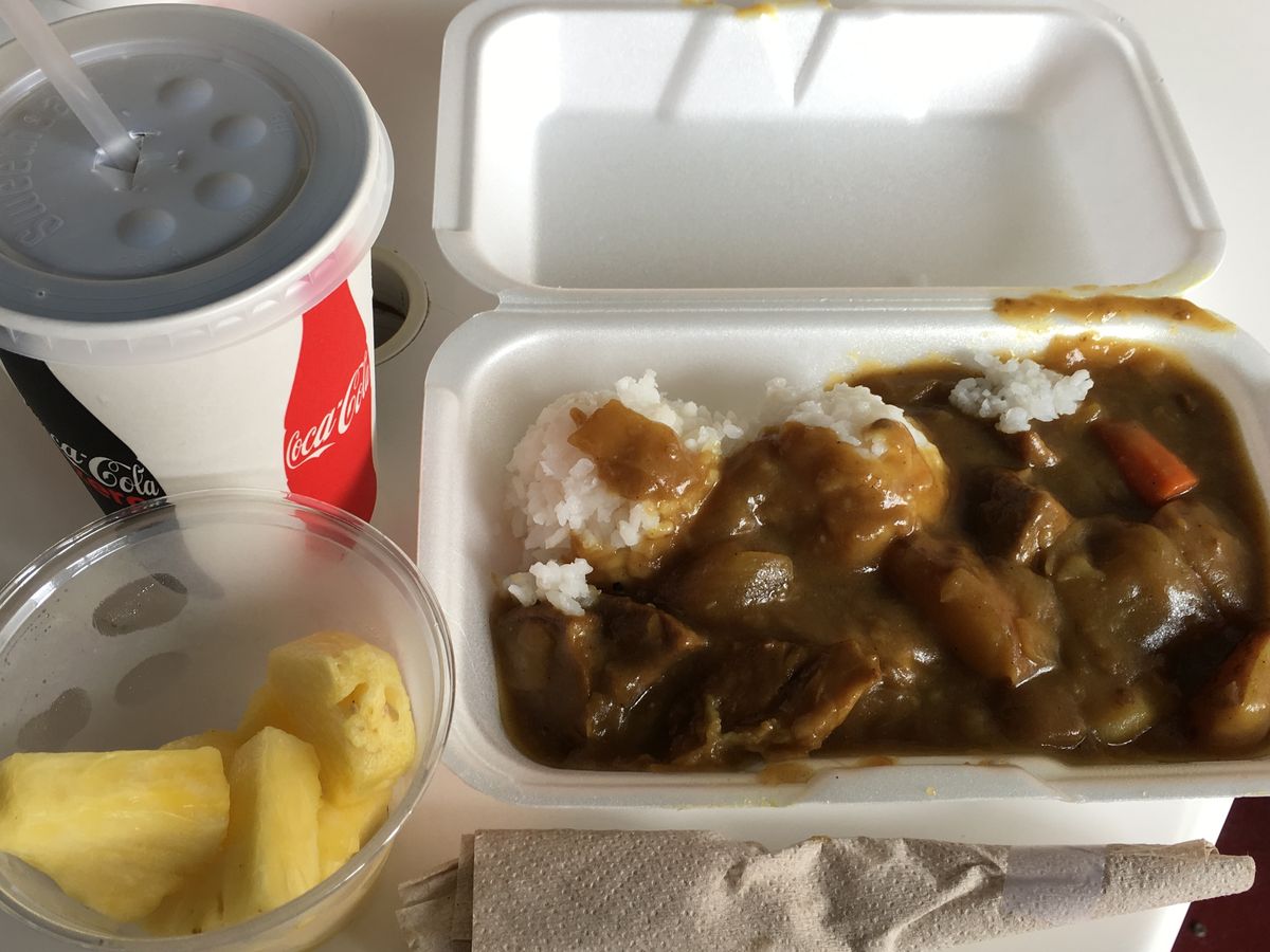 気になる昼食は、お肉がゴロゴロとはいった美味しいカレーライス・ドリンクおかわり自由です。