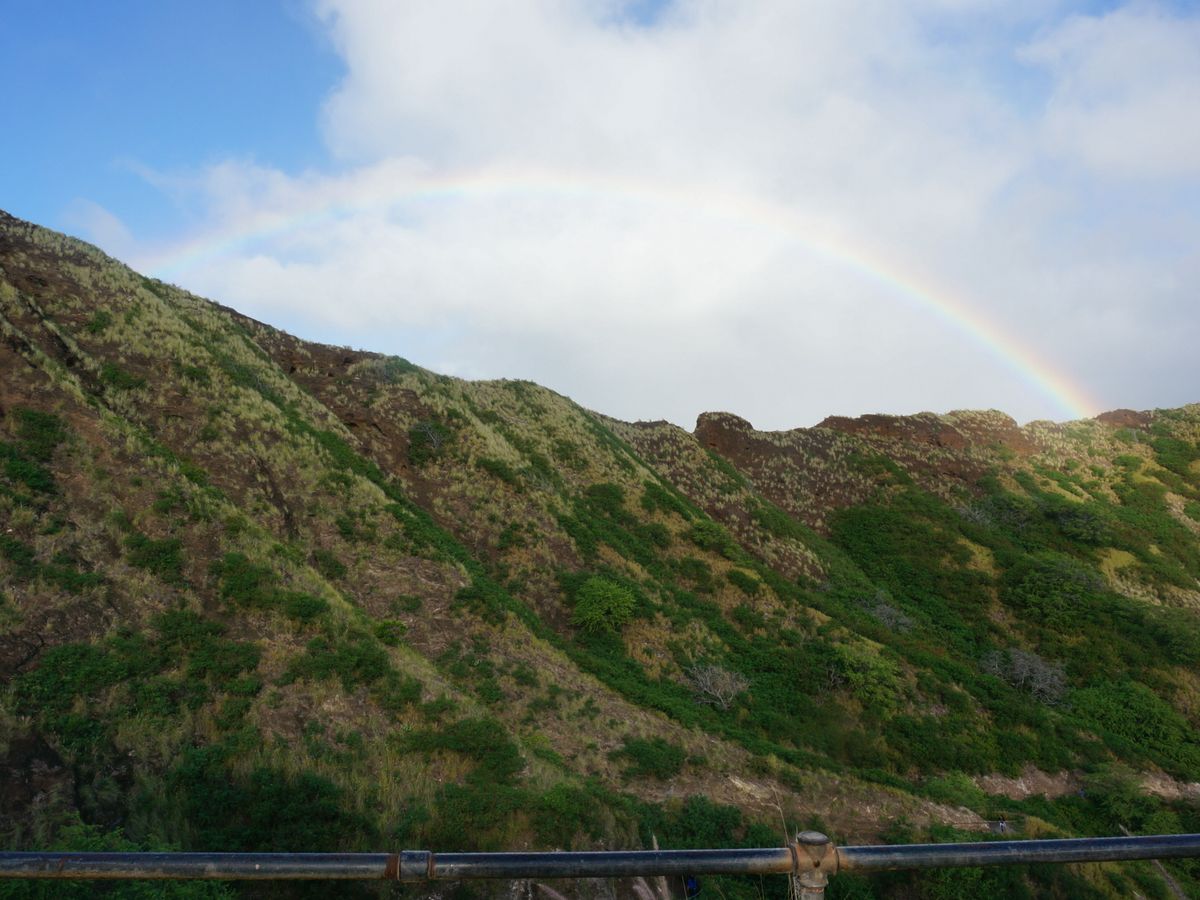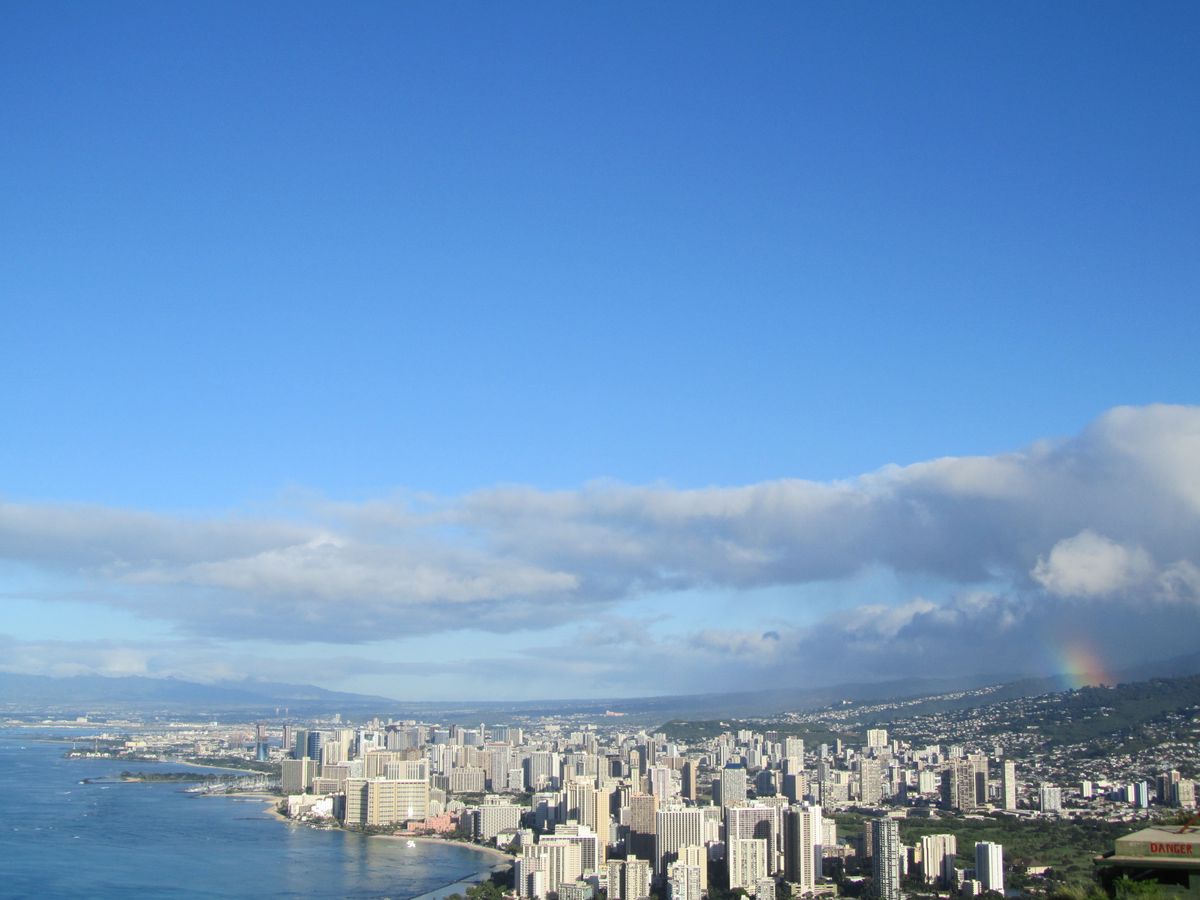 汗ばんだ体に風が気持ちいい。ワイキキ海岸に虹が現われた。