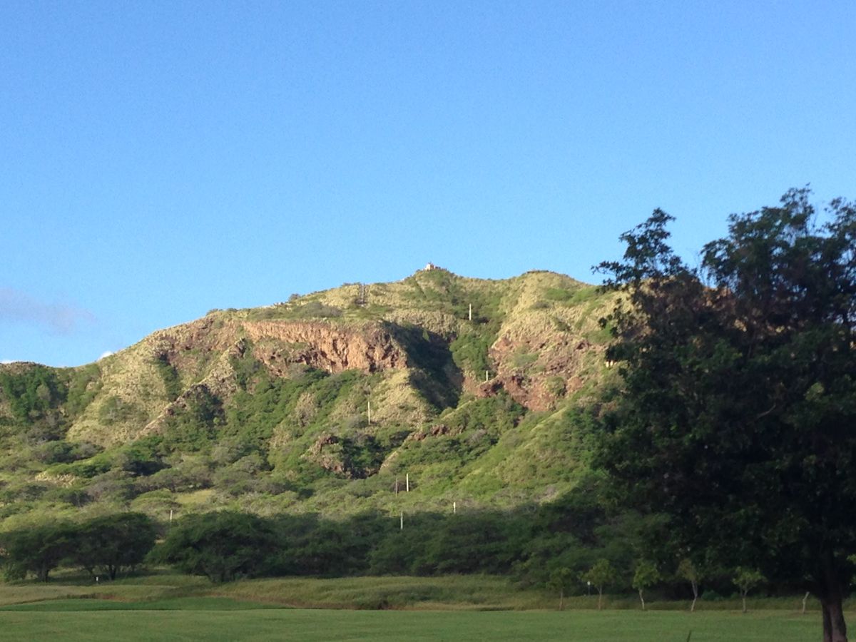 ダイヤモンドヘッド登頂は、年をとった私達には少々しんどかったですが、なんとか登れました。雨季にもかかわらずお天気にも恵まれ、特に頂上の景色は素晴らしかったです。疲れを忘れてしまいました。