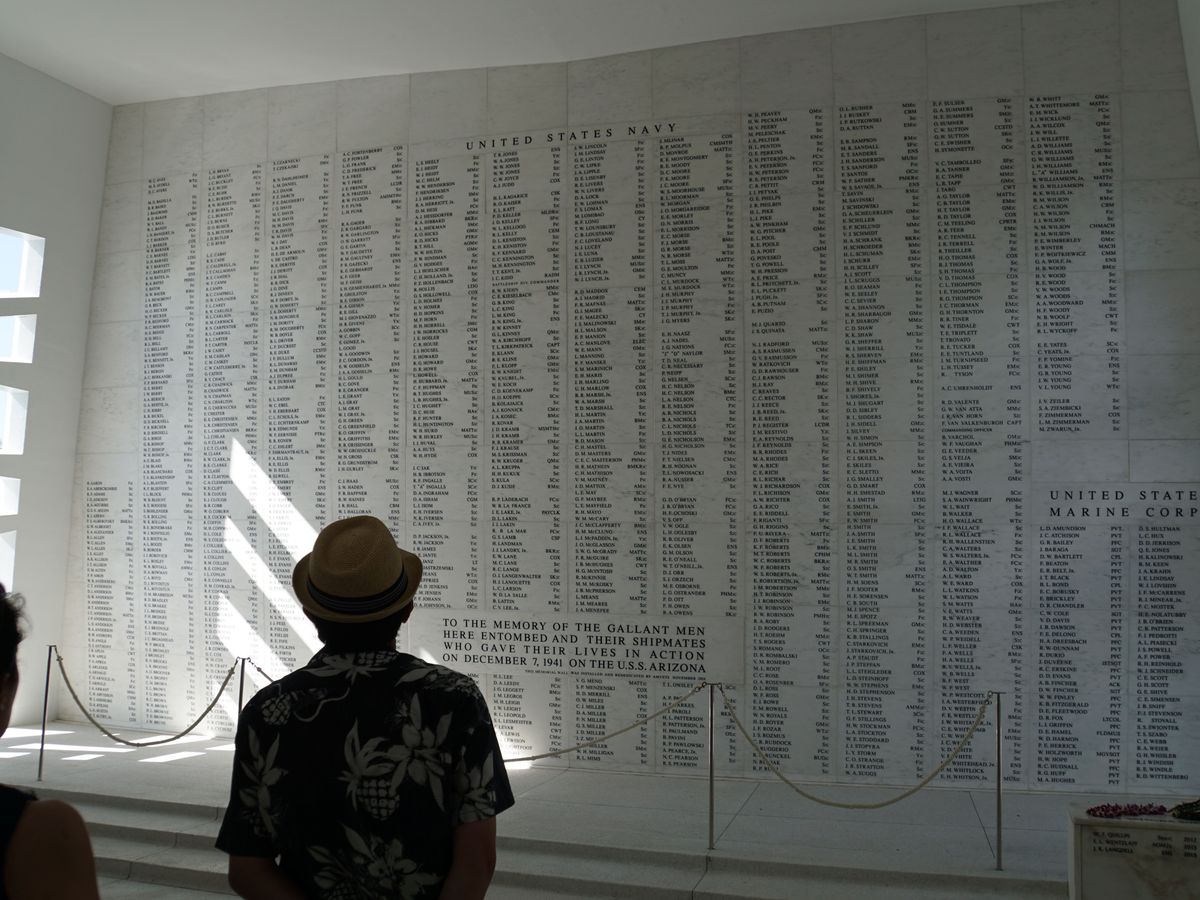 真珠湾の見学も、ガイドさんの丁寧でわかりやすい説明があり、幼い頃の記憶に少し残っていた戦争について、再び考える機会を持てて良かったと思います。戦艦ミズーリの零銭突入跡や、今尚多くの乗組員が眠る水没した戦艦アリゾナを見て、日米の厳しい歴史、また諸先輩方の苦労に思いをはせ、改めて平和の大切さを感じることができました。