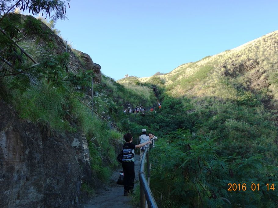 ダイヤモンドヘッドのハイキングは、片道約30−40分程度なのですが、歩き慣れていないと少々キツいような気がしました。幸い、私たちは普段からウォーキングをしていますので大丈夫でしたが、坂は途中から急になり、最後は階段で登るような感じです。ルートは整備はされていますが、スニーカーは必須です。当然山頂からの景色は最高で、登った後ではダイヤモンドヘッドを見る意識が大きく変わると思います。少々疲れますが、本当にお勧めしたいです。