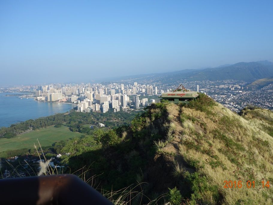 ダイヤモンドヘッドの頂上からの景色、最高でした!12月でも汗をかくのでタオルは必需品です。