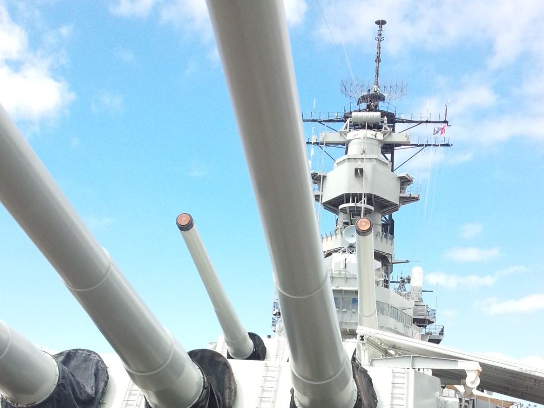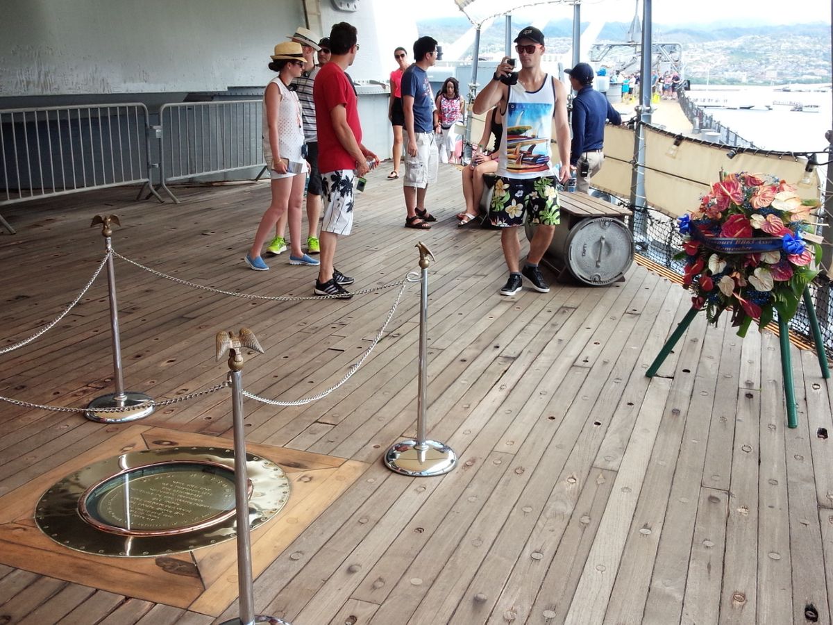 パールハーバーではまず戦艦ミズーリから!神風特攻隊が接触した跡が残っていたり、降伏調印式の時の資料が飾られていたり、見どころ満載です。現地のガイドさん(日本人)が丁寧に説明してくださいます。