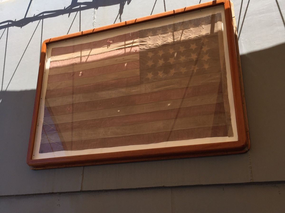 ペリーの星条旗の現物、零戦の突撃で付いた傷!