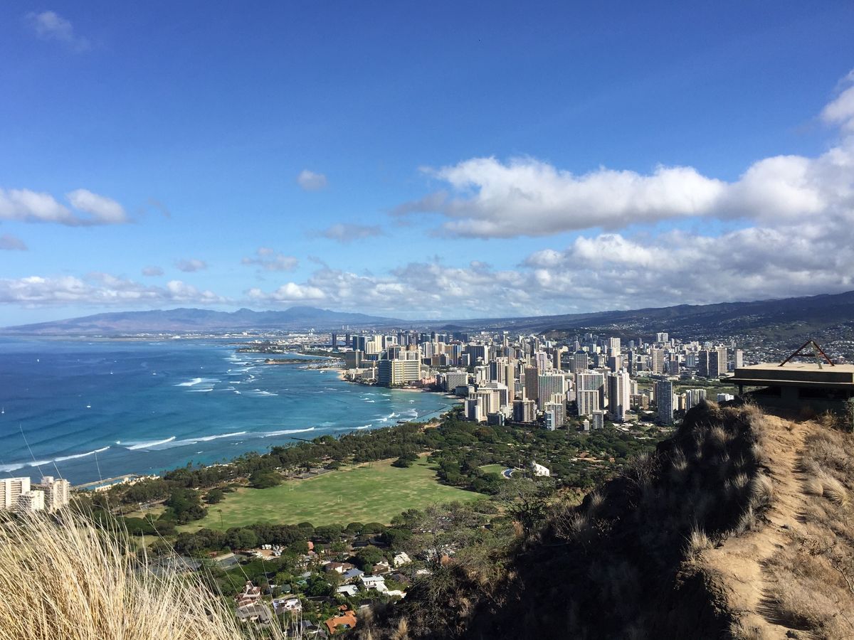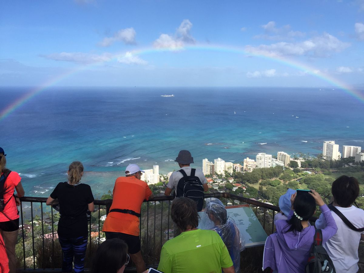 爽やかに吹き抜ける風と眼下に広がるWaikikiの街並み、エメラルドグリーンの海に青い空にかかる虹、一生忘れられない風景です。