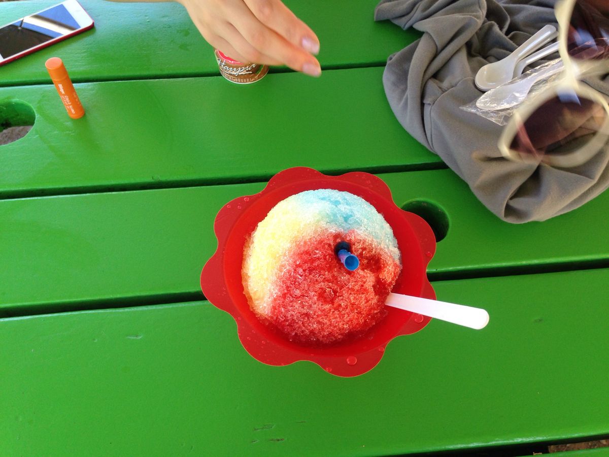 まず行ったのはダイヤモンドヘッド。たくさんの人が登っていたが、頂上からの眺めは気持ちよかった。ワイキキを見渡す。もちろん海もきれいだが、反対側の山とそこから出てくるような雲も美しい。景色を見終えて山をおりたらジャニーさんおすすめのかき氷。三色でカラフル。さっぱりしていて日本で食べるよりもおいしく感じた。ちなみに、ダイアやモンドヘッドの由来は、ダイヤモンドが取れた!と勘違いしたことらしい。実際には水晶だったようだ。