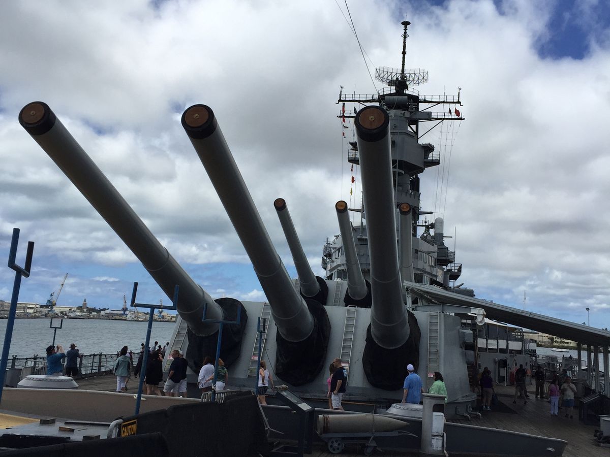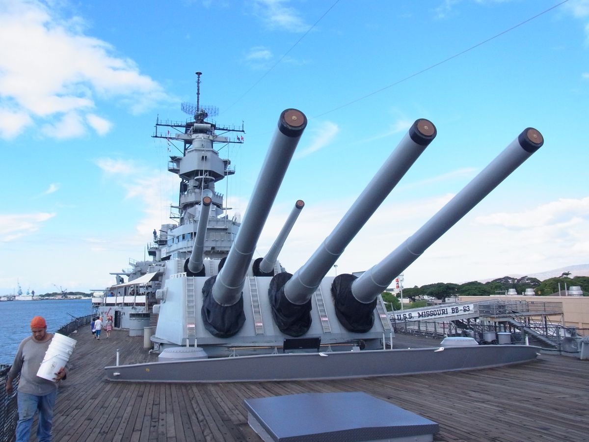 ・ダイヤモンドヘッドから40分くらいの車移動で、軍敷地内へ。ミズーリは想像以上に大きかったです。ミズーリ専属のガイドさんから諸説明を聞きながら艦内各所を撮影・見学しました。基本歩きなので、やはりサンダル・ミュールより運動靴のほうが疲れないので良いと思います。歴史的なものをちゃんと保存し、公開しているアメリカって凄いなと改めて感心しました。