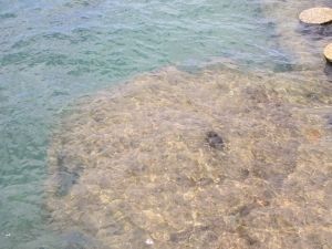 5歳の息子にもわかるように、バス内で日本の添乗員の方が、説明してくれて、又建物内でも説明を受け、船でパールハーバーへ。60年以上経つ今でも1700余りの遺体が海底にあり、船体も引き上げないまだそうです。 そんな戦争から60年以上経過した今でも、海底の船体からは、油が少しずつもれているそうです。そんな、中で沢山の魚達が海上からみえました。
