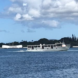 過去の歴史を振り返る体験は、普通の観光とは違い、重い物を感じました。アリゾナ記念館に向かう船を待っていると激しいシャワーが降ってきて、ついてないなと思ったのもつかの間、綺麗な虹が現れパールハーバーの絵葉書を生で見れてかんげきでした。