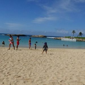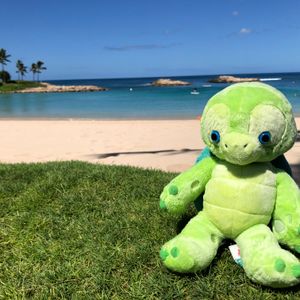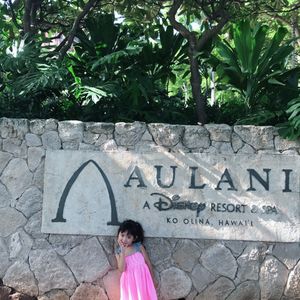 アウラニではキャラクターたちが順番に席に遊びにきてくれて、みんなと写真が撮れました。食事内容も良かったです。フルーツが美味しい❣️その後子供達が海に入りましたが、とてもきれいな水で、波も穏やか、安心して遊ばせられました。