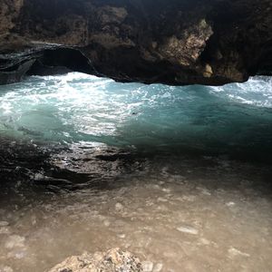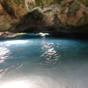 神秘的な空間ですが、足場は不安定ですし、頭上にも注意が必要。この日は波も荒く、下半身びしょ濡れになりました。