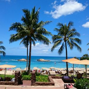 アウラニはワイキキとは違うプライベートな空間が広がっていてビーチも穏やかな時間がながれていました。