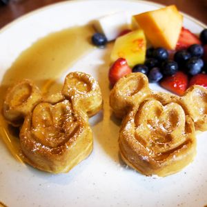 レストランに入る前にミッキーと写真を撮りました。子連れの方は子どもだけで撮った後にファミリーでの撮影をしていました。写真は自分のカメラにもたくさん撮ってもらえます。レストランではミニー、グーフィーが席まで来てくれて、大興奮でした❤️料理も美味しかったです!