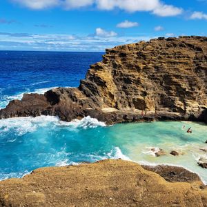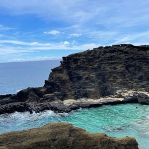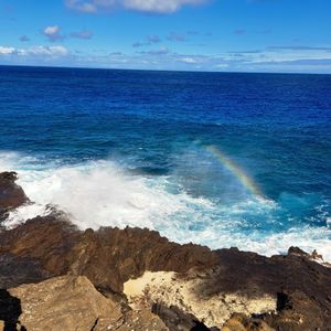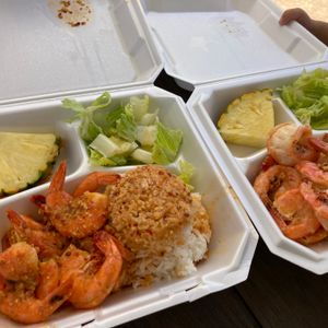 先ずはフリフリチキンとガーリックシュリンプの美味しいランチを堪能し、ホールフーズマーケットでちょっぴりお買い物、その後マカイリサーチピアの桟橋の下・マカプウ岬・潮吹き穴&エタニティビーチを巡り、青い海と空の美しさと絶景にその都度感動!!