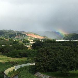 ドライバーのトミオさんと車中でも話しは盛り上がり、リクエストした(カイルアタウン.ハレイワ.この木なんの木.ドールプランテーション)以外にもラニカイビーチ、ノースショアでの海亀。途中2度も虹に遭遇。出雲大社にも寄ってくださり、朝食にブーツ&キモーズを店内で、昼食にガーリックシュリンプ、夕食のロコモコ持ち帰りとリクエストにも応えてもらいました。雨模様のお天気も車に乗ると雨、降りると晴れ間とコースどりもバッチリ。6人とも大満足でトミオさんに大変感謝しています。渋滞で到着時間も1時間近くオーバーしましたが追加はいいですと言っていただき、本当にありがとうございました。