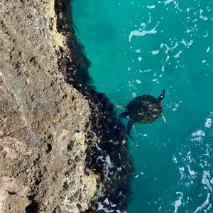帰り道、カメが泳いでいる海岸へ案内してもらい、二匹発見!