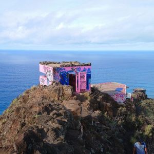 5分程岩に腰掛けて、鮮やかなピンクと海、青空のコントラスト、海岸線の美しさを堪能しました。