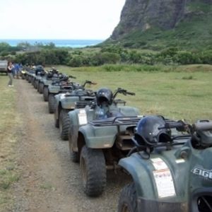 私たちは半日コースで四輪バギーと乗馬に参加しました☆四輪バギーの方は慣れるまでは結構ドキドキもんです!!でも絶対やるべき!!!!思った以上にたくさんの時間乗れるし、必死に運転しながらも見えてくる景色はどんどん変わっていって綺麗でステキだし♪♪乗馬の方は日本でさせてくれる乗馬のみたいにスタッフの人にひかれるのではなく、自分1人で乗れるけど・・・かなりお馬ちゃん達は躾られていて元気もなくて、かわいそぅになってきました。だから私的には切なくなったので微妙です★でも彼は終わったあと、嬉そぉにおしりがイタイ痛いと言っていました。確かに痛かったですけどね。私たちがこのツアーに参加する1週間ほど前に友達もハワイでこのツアーに参加していて、友達はジープツアーに参加したそうです。かなり絶賛していましたよ☆だから彼と終わったあとで『四輪バギーとジープにすればよかったね』と話していました。だけどこのツアーに参加すると普段は味わえないハワイの景色を見ることができたし体験できたので大満足です♪♪あっ!参加される方は汚れてもいい服で行った方がいいですよ!終わったあとは泥が飛び跳ねたあとで結構ドロドロになりますから☆