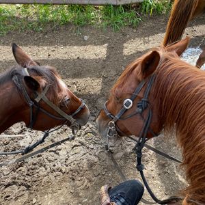お馬さんはクチコミにもあるように調教されており、初めての乗馬でも2時間危ないこともなく終えることができました。5人に1人スタッフ1人つき、馬が進まなくなったり草を食べてしまった時に駆けつけて対処してくれていました。それ以外はスタッフの人は馬に乗りながら携帯を見ていたりしていました。