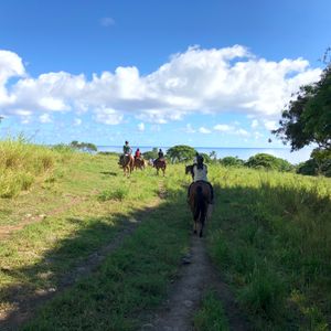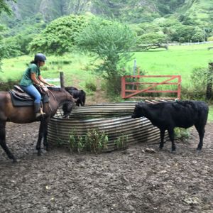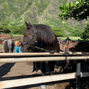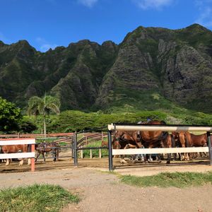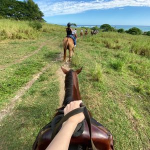 何度かハワイに行っていますが、クアロアランチはずっと気になっていましたがなかなか参加する機会がなく、今回の旅行で初めて夫婦で参加しました。いつもは海ばかり行っていてハワイの森や自然を感じた事はなかったので、今回こちらのツアーを参加してとても感動しました。私たちは乗馬を選びました。大自然の中を一列で進んでいく間に海や山など様々な景色を見ることができます。初めての乗馬で緊張しましたが、私の馬はとても大人しく、寄り道もせずに歩いてくれてとても楽しく乗馬できました。旦那の馬は途中で何度も草を食べたり、おしっこをしたり、なかなか苦戦していました(笑)しかし、スタッフの方も列の前後にいて、助けてくれるので安心して乗馬できました。乗馬が終わってからは、ハワイでできる農作物を巡るツアーをしたり、映画の撮影地を巡るツアーをしたり、本当に盛り沢山でとても大満足でした!今回のハワイ旅行で1番の思い出となりました!また参加したいです!