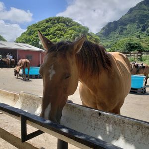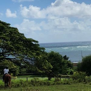 以前、クアロア牧場で乗馬を体験したのもあり、今回はこちらにしてみました。乗馬だけでなく、ドールプランテーションやハレイワタウンにも行けるツアーは乗馬を目的とした私たちには大変満足な内容でした!45分の乗馬時間も短いかなと思ってましたが、たくさんキレイな景色を観られ、充分ハワイを感じることが出来ました!他のツアー時間もちょうど良く、移動中もドライバーの方がいろいろお話し下さり、内容の濃い半日を過ごすことができました。