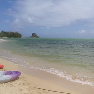 乗馬+シークレットアイランドツアーに参加しました。朝の7時に送迎バスでピックアップしてもらいました。日本人は私以外は一組位で外国の方がほとんどでした。一時間半位でクアロア牧場に到着しましたが、スケジュールを教えてくれるスタッフの男性が手加減なしの英語で分かり辛い(笑)。それでも集合時間が記載されたペーパーを渡されたので大丈夫でした。荷物は有料ロッカーに入れますが($5)、これは事前に教えてくれた方が現地に行った時慌てないかなと思いました。最初の乗馬は10分程のビデオガイダンスを観て、馬に乗ります。外国の馬で胴が太いのせいか、私の足が短いせいか(笑)、なかなか足が疲れます。馬が道草をしたら両足でキック!と教えられますがなかなか馬には伝わらないようでした。それでも約40分程、馬に乗りながら山道を歩きながら海を見たり楽しかったです。乗馬して間もなく、スタッフが写真を取ってくれますが、これは帰りのお土産用の記念写真で、三枚で$30でした。乗馬後、昼食でブフェでした。内容はチリライスやBBQポークやチキン等、ハワイアンな味付け濃いめの食事で意外に美味しかったです。昼食後、シークレットアイランドツアーに参加するのですが、集合場所が分からず、相方がビジターセンターで日本人スタッフの方に聞きました。牧場からバスに乗り、ボートに乗りかえてシークレットアイランドに行きます。この時のスタッフも容赦ないスピードの英語で(笑)、説明がいまいち分かりませんでした。それでも周りの参加者の様子を見よう見まねして、着替えて泳いだりボートに乗ったりして楽しみました。唐突にグラスボートが出るよ~と言われてあわてて乗り込みましたが、これがなかなか楽しめました。沖まで行って戻ってくる感じでしたが、チャイナマンハットを間近に見れたり海ガメも顔を出していたり、スタッフも気軽に写真を取ってくれました。最後の集合時間もよく分からず、周りを見て早めに着替えて再びボート→牧場に戻りました。今回のツアー、日本の旅行代理店に慣れていると、日本語対応で結構慌てますが、こちらから質問すればスタッフは親切に教えてくれますし、ドタバタも含めて楽しい思い出になりました。ただし、最初のスケジュール説明はもう少し丁寧にして欲しかったと思います。