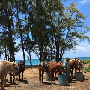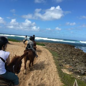 一人で参加 午前中はドールパイナップル、お昼は ハレイワで ガイドさんお勧めのエビのプレートランチを食べました。とてもおいしかったです。乗馬はタートルベイの美しさと重なりとても楽しかったです。馬もちゃんと訓練されており馬に乗っているというよりも乗せてもらっているみたいな感じでした。初めての方でも たずな をしつかり持っていれば大丈夫 コースガイドさんの指示で馬は動きますので 何より景色がきれいなので テンションが上がりあっという間でした。帰りはビーチでウミガメ見学 癒されました。