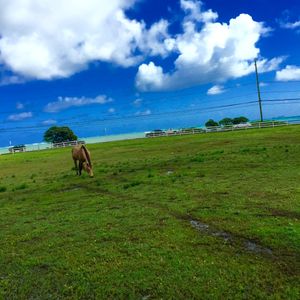 7/11,12の2日間スイートハート(キャンターコースはオプションで$10アップでした)で騎乗。The Busでアラモアナから2時間で行けます。ハワイの学校が夏休みに入ったのか子供たちがいっぱい。我々が着いても受付に誰もいません。うろうろしている人に「予約している」と告げるとスタッフが出てきて免責の書面に各人サインしてから馬の準備。我々4人は内外地で外乗で走ることを楽しんでいますので、ここでもギャロップで走るつもりで来ました。内容は予想通り40Kmかそれ以上のスピードで走ることが出来ました。ただし、事前にこの程度の速度を経験していないと危険ですので、ガイドさんにはどの程度で走るかを指示しておく必要があると思います。乗馬クラブのラチ内での駈足は20Km位までですので車で言うとギアが3速から4速に上がる感じです。途中ノースショアの景色を見下ろせる丘でランチですが、馬のゼッケンのポケットに入れてあったランチボックスの中が上下の振動でグチャグチャになっていました。2日目はランチを持って行かないで戻ってから食事にしました。また、鐙は日本人には長すぎることが多いので、自分に合わない場合は妥協しないで調節(調節出来ない場合は子供用の鞍に替えてもらう)しないとキャンター、ギャロップでは落馬につながります。速度の点も含めて片言ででも英語で意思疎通が出来た方が良いと思います。事故は自己責任ですので。日本での外乗と比べて解放感がまったく違い、速く走りたい方には絶好の牧場です。(歩くコースは歩くだけ、キャンターコースはオプションです)コースによって時間が決まっており選択の巾が少ないのが残念です。