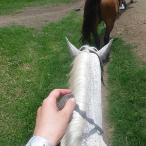 乗馬は初めてだったのですが、全然怖くはありませんでした。ただ、私の乗った馬は、お腹がすいていたのか、途中で何回も草を食べるために立ち止まってしまい、引っ張って前に進ませるのがたいへんでした(^_^;)スタッフの方にも何回も「引っ張ってー!」と言われましたが、私の力が弱いのか、なかなか言うことを聞いてくれず苦労しました(^_^;)でも日本ではなかなかできない体験なので楽しかったです^ ^